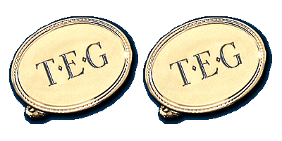 vermeil large oval cuff links with polished finish and engine turned wriggle border