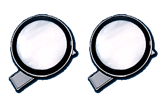 sterling silver with rhodium electroplating round cuff links with genuine onyx and mother of pearl