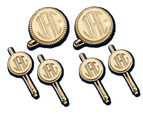 vermeil shirt studs & cuff links set with polished finish and beaded edge