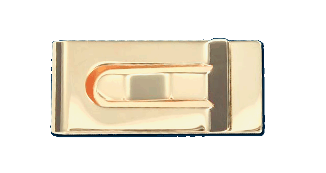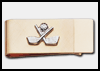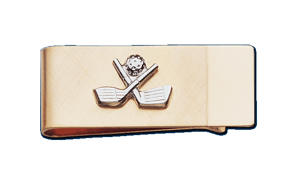 gold electroplated money clip with gold clubs and ball on satin finish with 3/8" polished engravable bottom